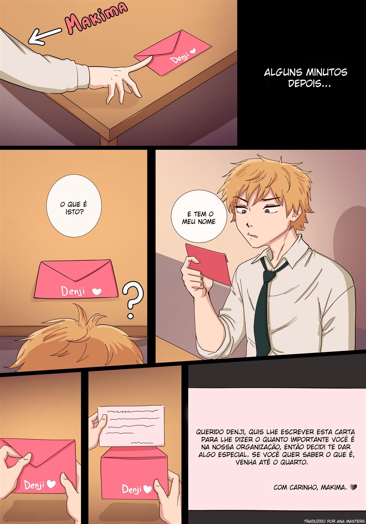 O Presente de Makima para Denji – Chainsaw Man. Denji recebe uma carta de Makima o convidando para seu quarto para lhe dar um presente especial. O que o rapaz não sabe é que o presente que Makima quer lhe dar é seu corpo para ele usar como quiser!