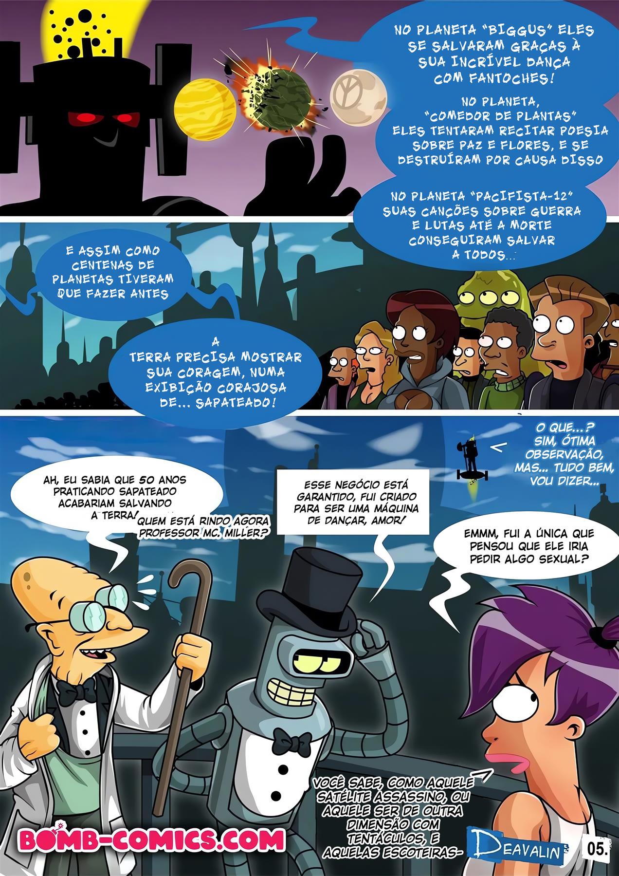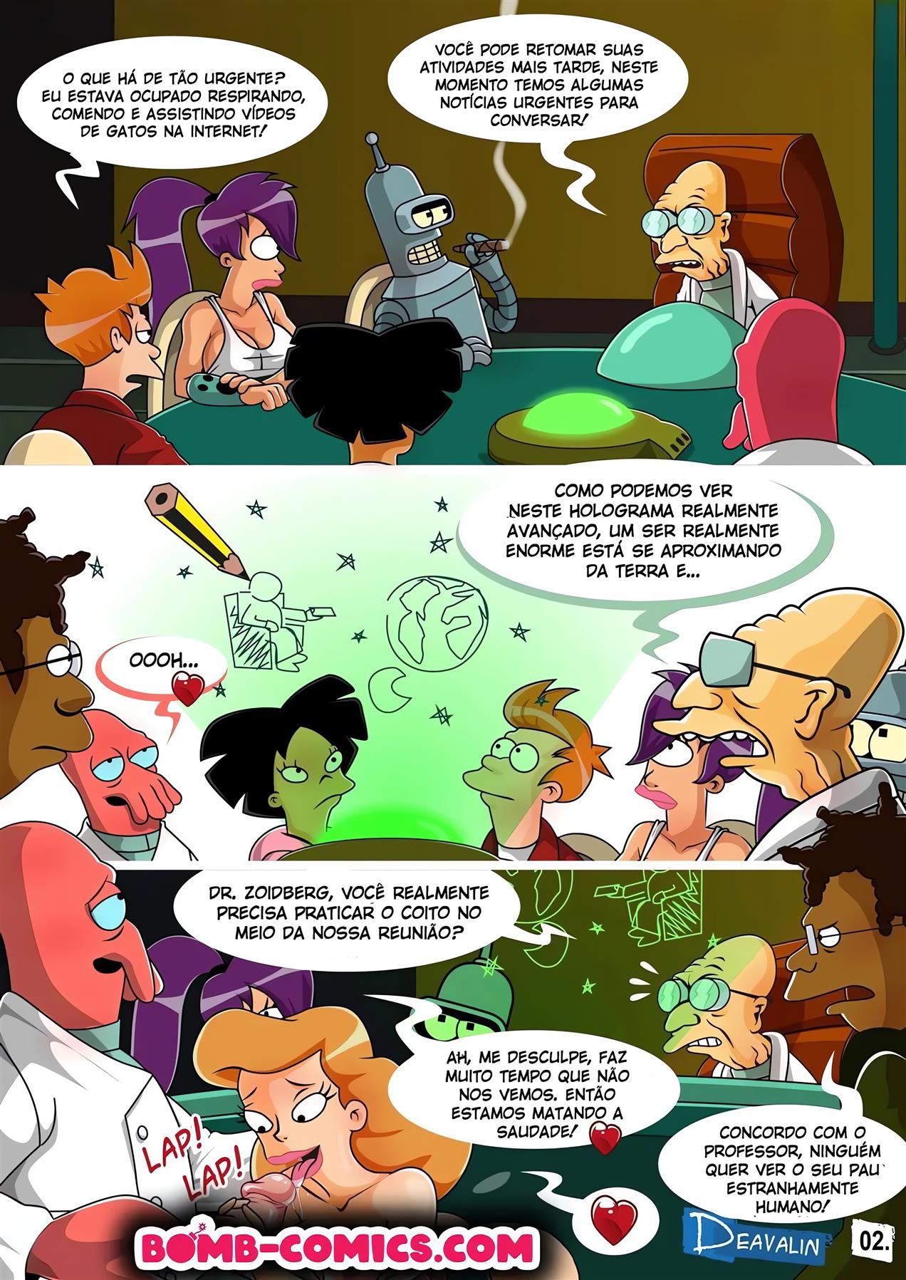 Orgia Para Salvar a Terra – Futurama Hentai. A terra está em paz e as pessoas seguem com sua rotina, mas uma nova ameaça pode por toda a existência em risco… Mega-Laxian um mensageiro dos céus surge condenando o planeta a destruição, a menos que os humanos se provem dignos de existirem. Os heróis pensam em uma dança de sapateado, mas a performance sexual de Zoidberg acaba despertando o interesse do tirano. Agora, para se salvarem, eles terão que fazer uma grande orgia interplanetária!